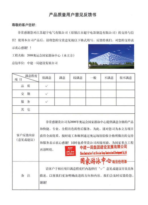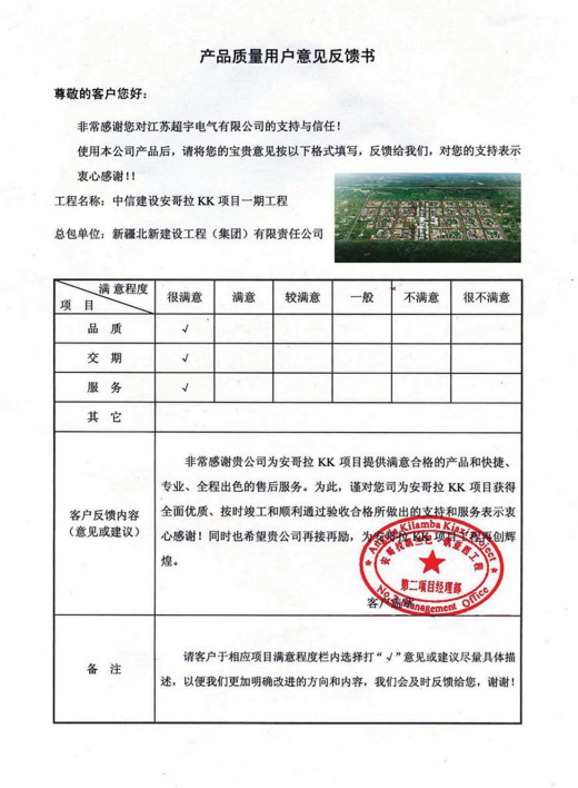 User feedback of CITIC Guohua International Engineering
